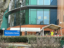 Vaccination day, following our invitation last week. We duly turned up at a local leisure centre promptly at 9.30 this morning, so promptly that our names were being called from the doorway as we arrived. We signed a consent form (no time to read it) before being shown to chairs, 2m from each other and from everyone else, all in separated rows like a school examination hall, but without desks. Those around us all seemed to be of a similar age to us, early to mid-sixties, with a sprinkling of younger people. Nurses pushed trolleys from the front, stopping at each chair to recheck the identity of the occupier, confirm no vaccine-adverse conditions or symptoms, and administer the vaccine, less than a minute before the nurse moved on to the chair behind. We were released after sitting for 10 minutes in case of an allergic response. 5 rows of 10 chairs, 50 vaccines, all in less than 15 minutes.