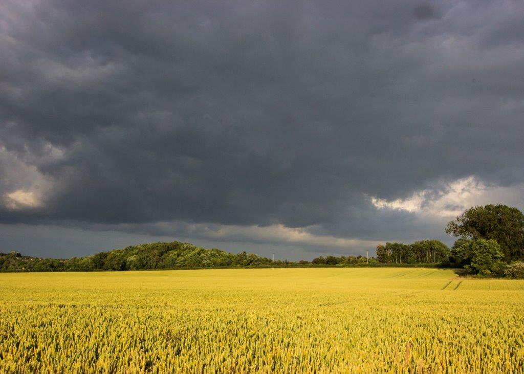 The view across the South Leicestershire countryside from the “New Hill” is predominantly brown, brown crops, brown pasture, even brown leaves on trees. More late August than mid-July.