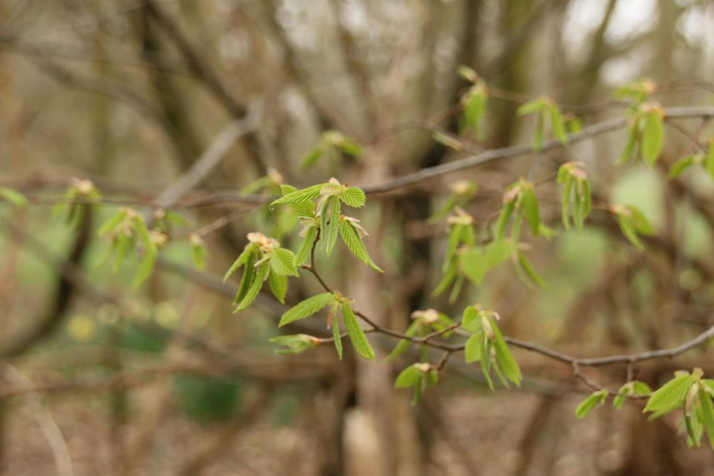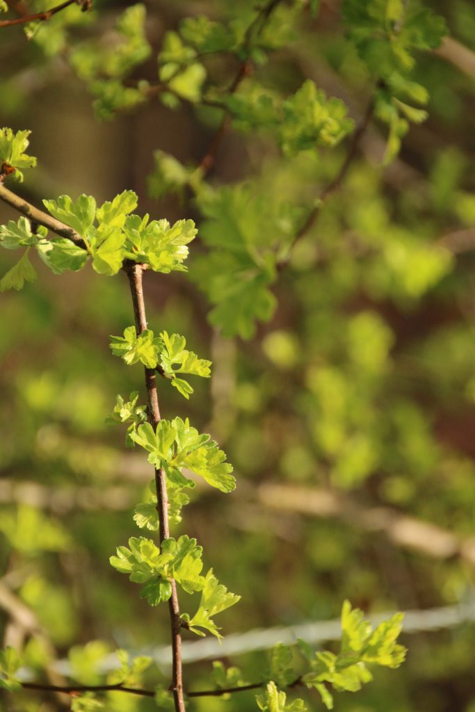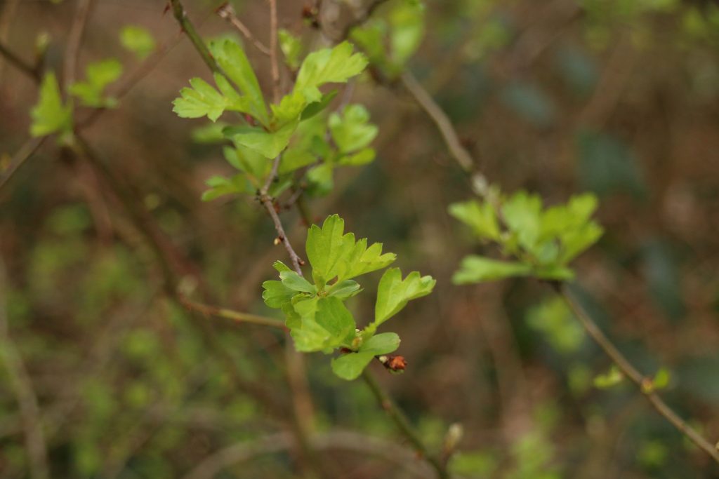 Just a few days since the last post, but, at last, Spring is now springing. Hazel leaves are just emerging from stems that, until now, only displayed male catkins. Young Hawthorne leaves are opening – it will be a few weeks before the Hawthorne blossoms. Wild Cherry shrubs are in full blossom, both in hedgerows and, not quite as vigorous, in shady woodland.