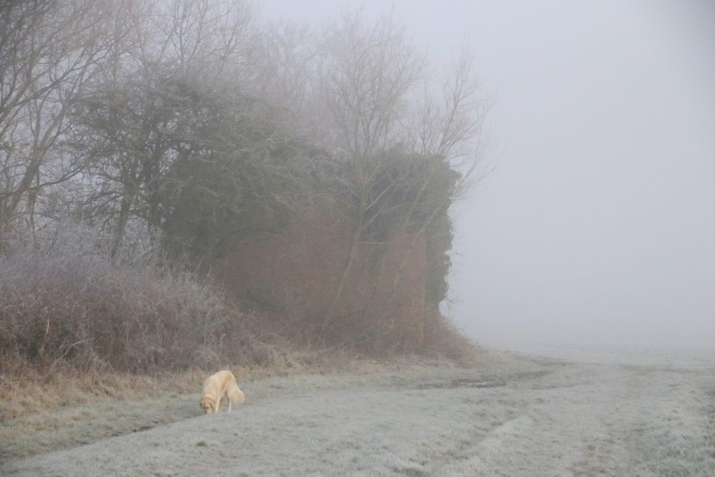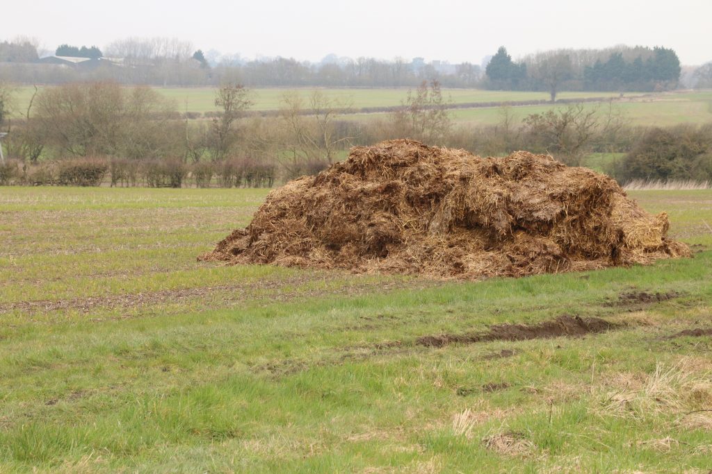 Most fields around us are arable, growing crops, although sheep graze a field further down the Lane, and from late spring, when the ground is drier and less likely to flood, sheep are introduced onto the riverside field in the shallow valley behind our home. Nevertheless, local cattle have made their mark in the fields. Many beef cattle are kept indoors over winter, but continue to produce quantities waste. During summer grazing the “cow pats” break down into the pasture, feeding the grassland, but for cattle in barns the waste must be removed, and supply exceeds demand for fertilising fields (which in any case rely mostly on chemical fertilisers). Piles of Cow-Poo, dung heaps, are dumped in suitable locations, theoretically where water running off the piles will not enter rivers, to rot down over summer before being spread on fields at the end of the season. Two such piles have appeared close to local footpaths, for the time being quite small heaps. Despite steaming gently on a cold day, the piles do not give out much of an odour, the biggest problem being discouraging the dogs from eating the stuff.