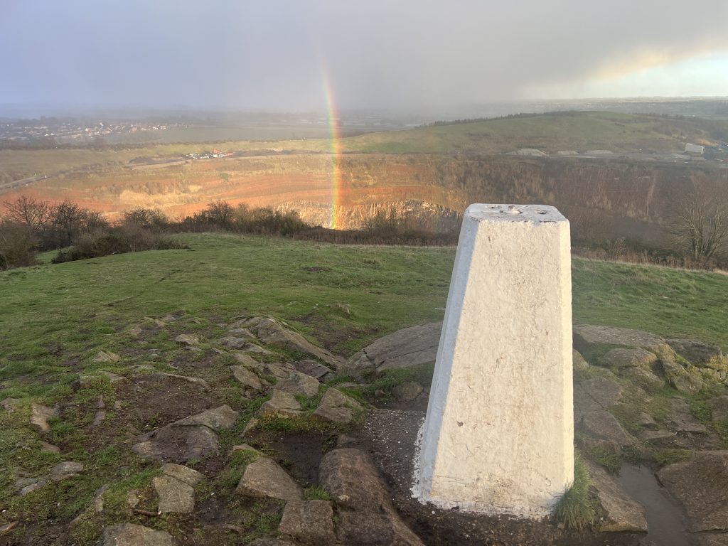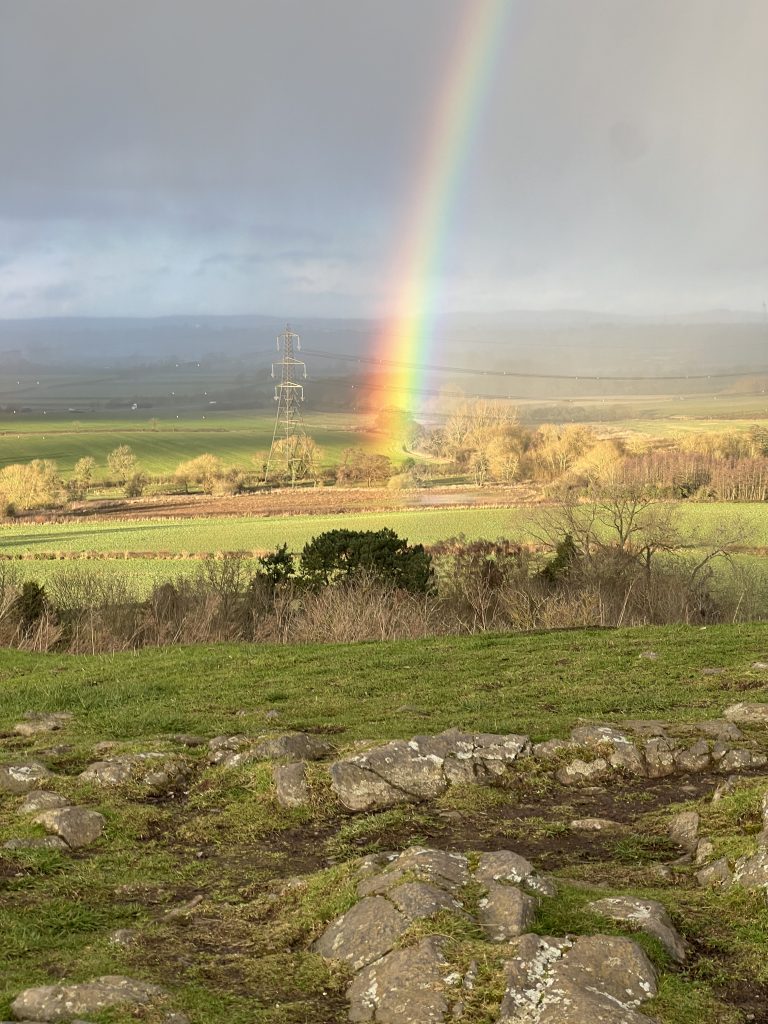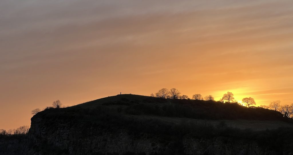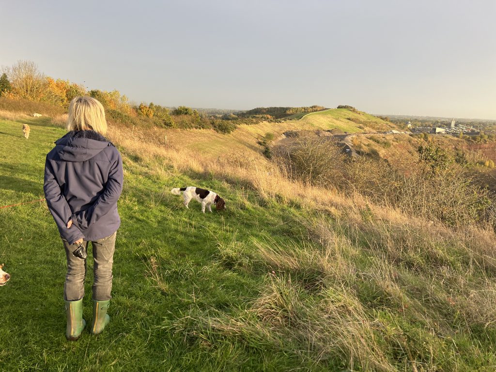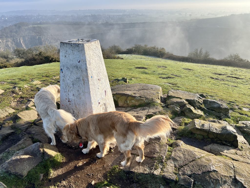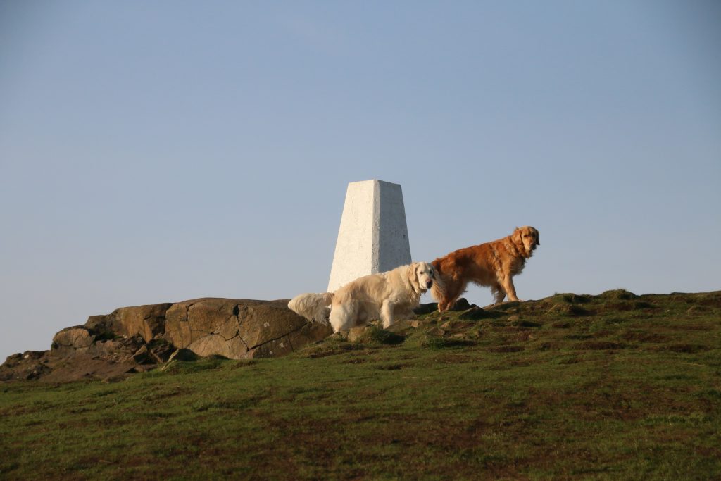 We climbed Croft Hill and met up with a friend and her elderly Springer Spaniel, who I haven’t seen for a while. We chatted for ages, the dogs pottering around, or just lying at our feet, the sun warm in a blue sky, and a clear view across the countryside in directions. Money cannot buy such a social occasion
