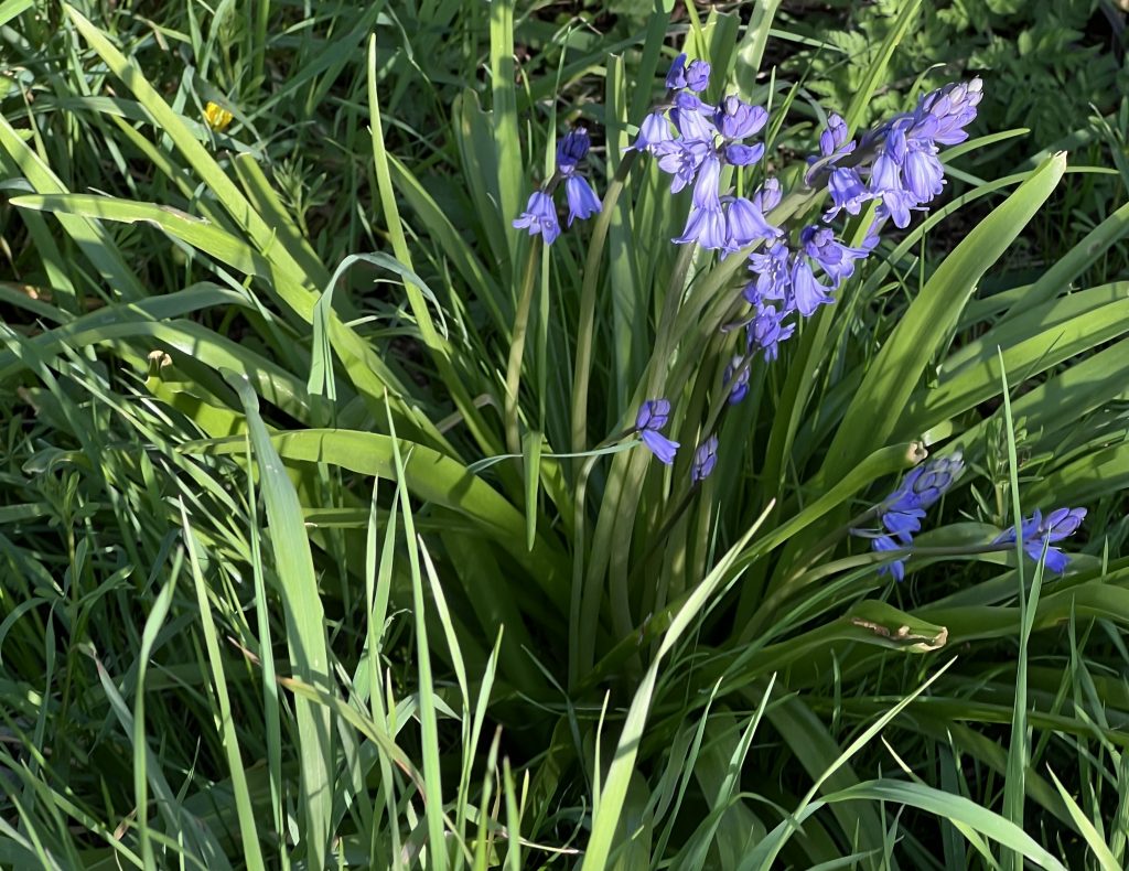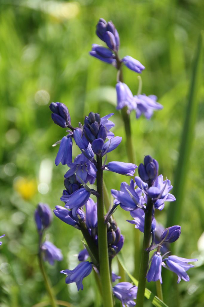 Away from the fields, along the tree-lined path leading down to the village, Hawthorn blossom buds have appeared in the hedgerows. Hawthorn hedges have long been fully clothed in foliage. Clumps of bluebells have appeared. I am sure that these are hybrids, a cross between Spanish Blue bells, which have flowers all around the stem, and the native bluebells, that carpet the ground with sweet smelling flowers on one side of drooping stems.
