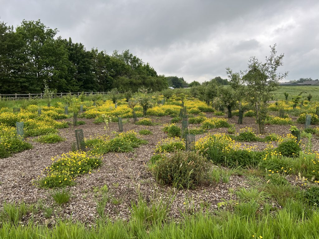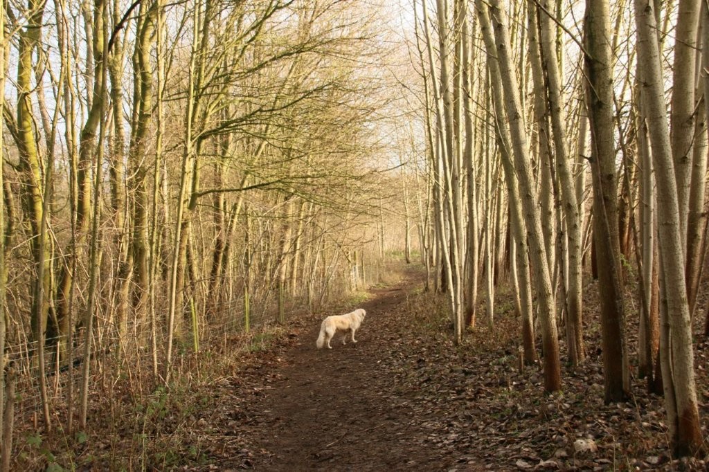 One of our routes passes a young patch of “woodland”, just a small plot of trees, planted only a couple of years ago by the Parish Council of a neighbouring village. The village school had a competition to name the wood, and voted to name it after a compatriot, a young lad who sadly died aged only 13. The wood has begun to mature, but it will be a year or two before the plants can be properly described as “trees”.