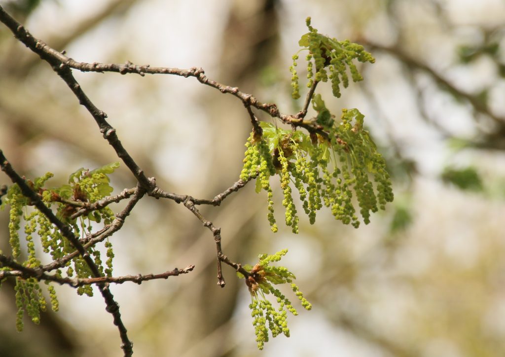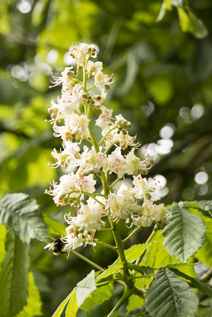 No rain of significance for over a month, and the ground is dry, hard, and worn tracks and footpaths are dusty. At least post-walk dog cleaning is restricted to dusting of paws. Nature is showing no signs of drought, with most trees in now in leaf, even oak trees, generally the last tree to display leaf buds (and the last lose leaves in Autumn). The oak leaves are still tiny, the ends of twigs dominated by the catkins of the male flowers. The tiny red female flowers, on the same tree, emerge from the centre of the small young leaves. The drooping leaves of the Horse Chestnut, the Conker tree, may look as if the tree is suffering from lack of moisture, but they are merely relaxing before expanding and filling out to make the most of the eventual summer sun.