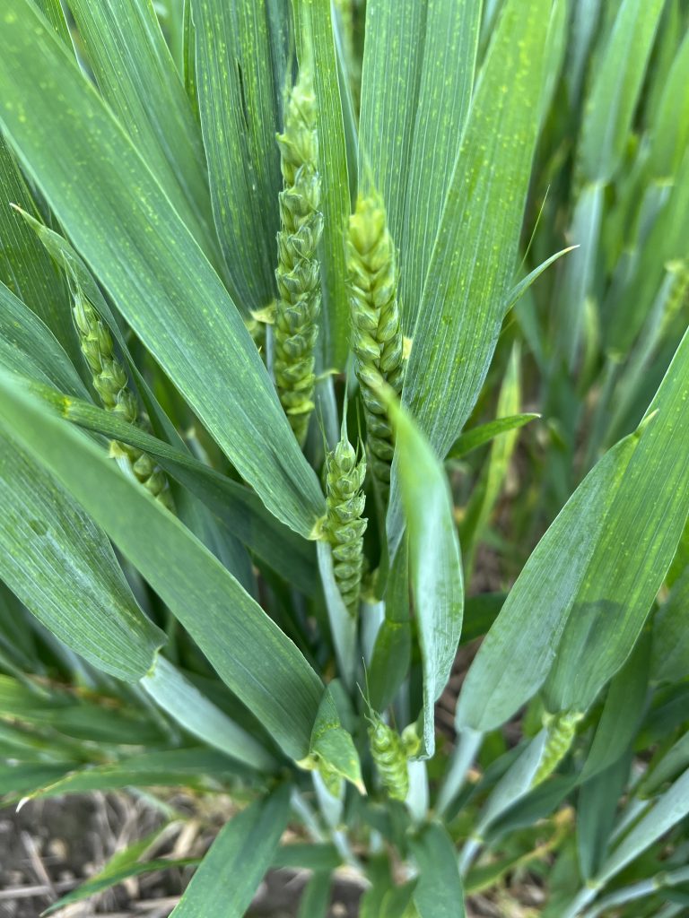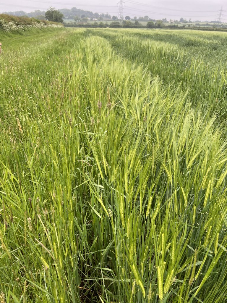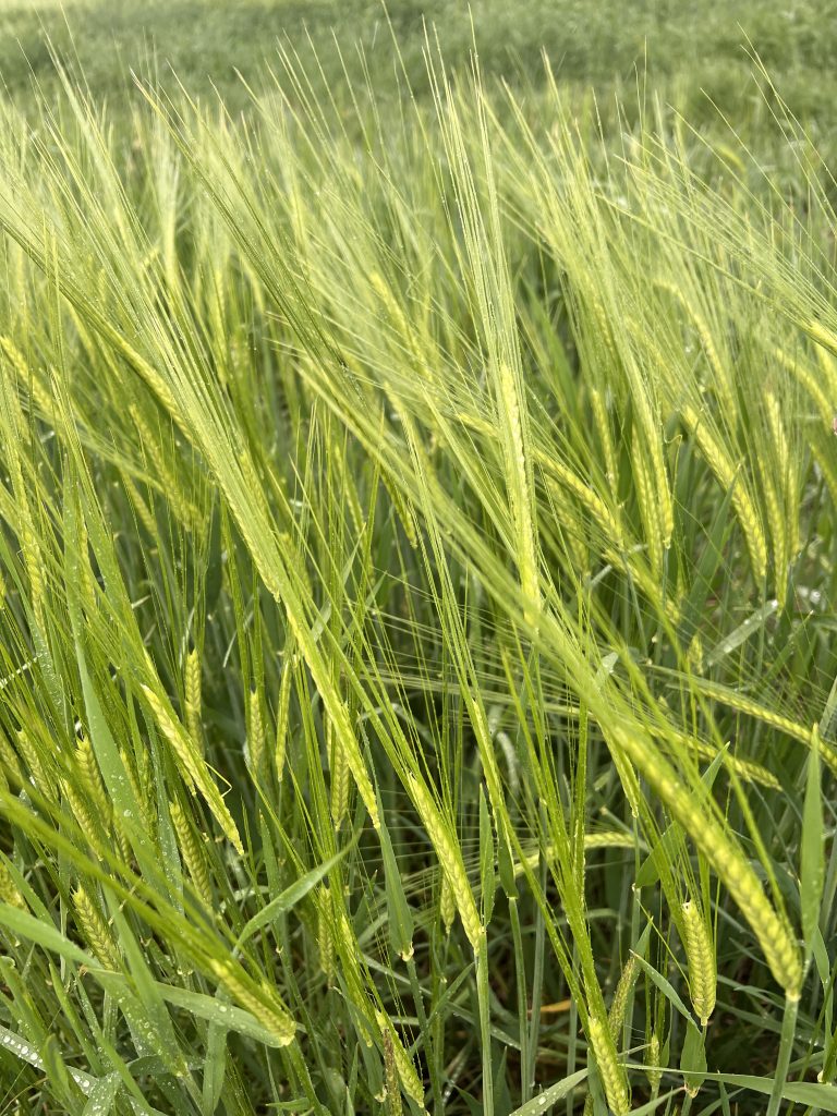 Arable “grasses”, cereals, have also produce green seed heads – hard compact grains of wheat, and softer barley, with its long awns or “beard”. It will be a couple of months before these ripen to gold, and another month before they are harvested.