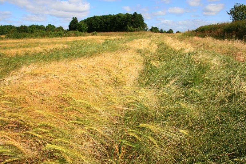 I was contentedly pottering in the garden (well actually a little more than pottering – labour-intensive pond clearing), enjoying the sound of a robin and tits of various varieties, when the peace was briefly interrupted by the more industrial than rural noise of agricultural machinery. A sprayer appeared beyond the garden fence, spreading a low mist of chemical behind it. This was almost certainly a selective contact herbicide, sprayed on the cereal crop to kill young weeds, recently emerged as the weather has warmed. The herbicide targets the broad leaved weeds, the cereal, effectively a grass, is unaffected. Crops are sprayed in low wind conditions to prevent the chemical from blowing where it shouldn’t. From our point of view this includes our back garden and the field edges, 5 metre wide grassy strips where wild flowers are allowed to grow (a condition of farm subsidies I think, but maybe just responsible farming?), and where, on two sides, public footpaths follow the hedgerows. From the farmers point of view, the applied dose is important; if even a light breeze blows the spray away from the arms of the sprayer, some weeds get a double dose, while others get none, ineffective and costly.