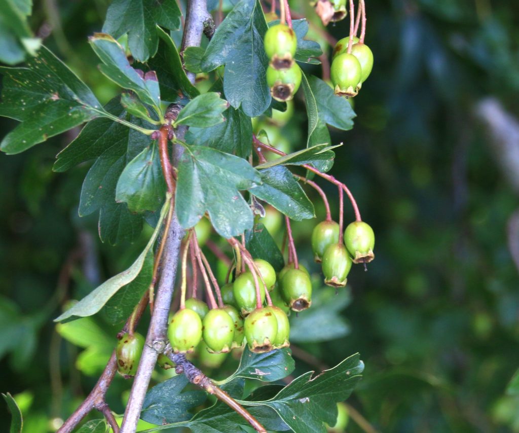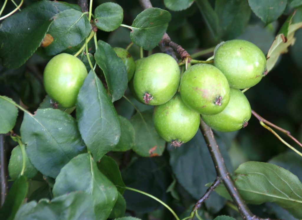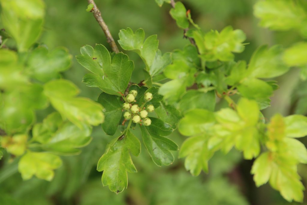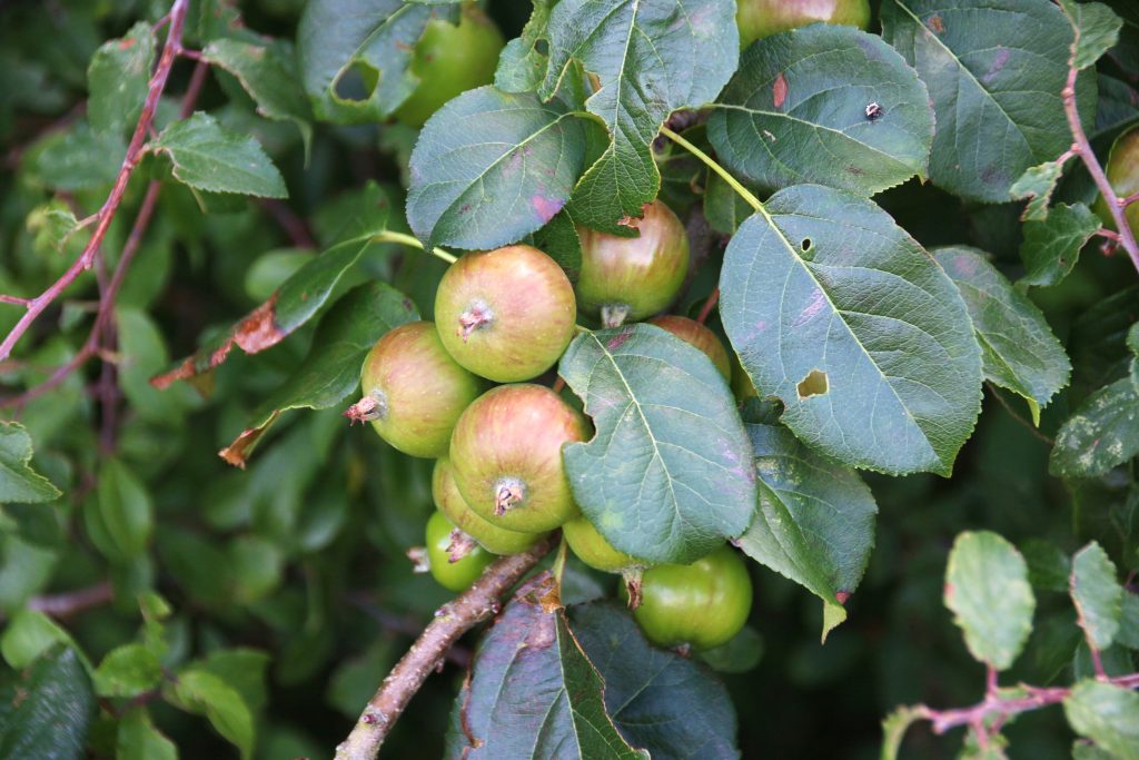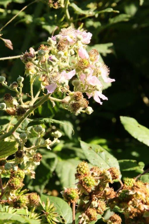 Hedgerows are beginning to fruit, with shrubs bearing crab apples and wild pears. Sloes are already turning purple, although, like the apples and pears, will not be ripe for weeks, at least in a normal year. It doesn’t seem long since Hawthorn was flowering, but the blossoms have already produced berries, although again it will be a while before these green “haws” turn red. Around the Glebe blackberries are already visible on brambles, but no ripe berries yet. On the higher New Hill, around the quarry, with more exposure to sunlight, brambles are already producing ripe blackberries, sweet, but very small.