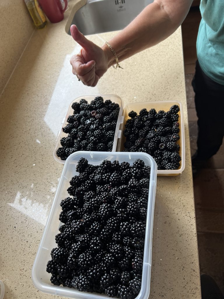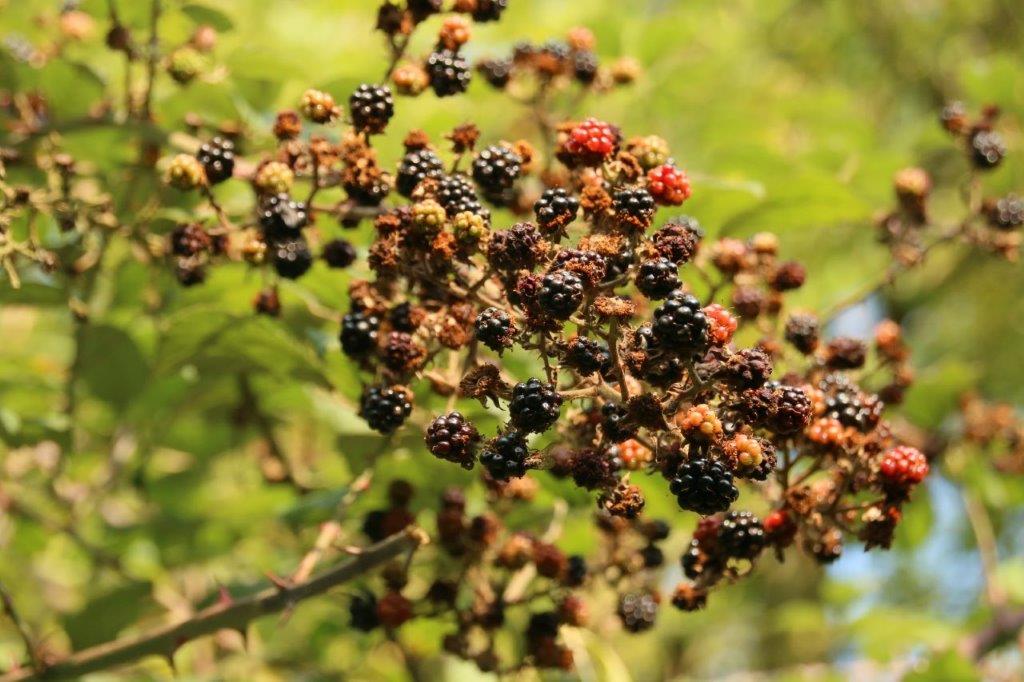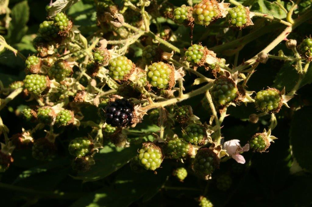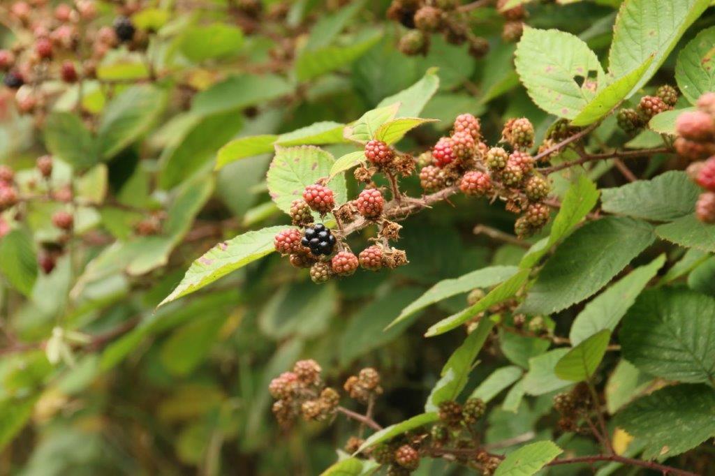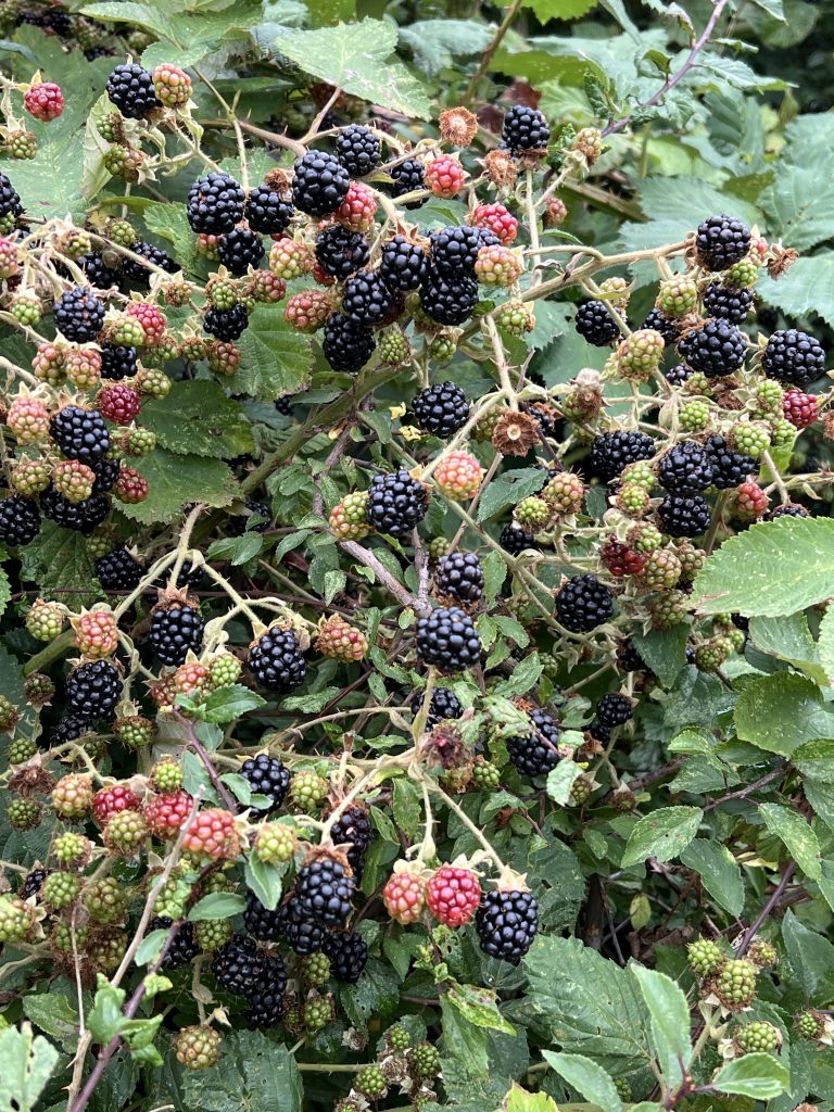 The blackberrying season is well underway, this year’s fruit large, abundant and, after a more days of warm sunshine, sweet. The brambles along the path between Croft Hill and the path around the quarry have been thoroughly harvested over the weekend, and only isolated ripe fruits remain among many unripe berries, which will be ready to pick in a day or so. You have to leave the well-trodden paths to be guaranteed ripe blackberries. The hedgerows by a route only used by local dog walkers still has a bountiful crop, and my wife spotted fruitful brambles along a gravel track off of a local lane and cycled there to pick over 3kg. I have already benefitted from a crumble, and jars of jam, the blackberries supplemented by fallen apples from our garden, are lined up in the kitchen.