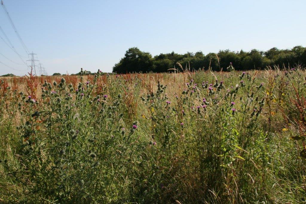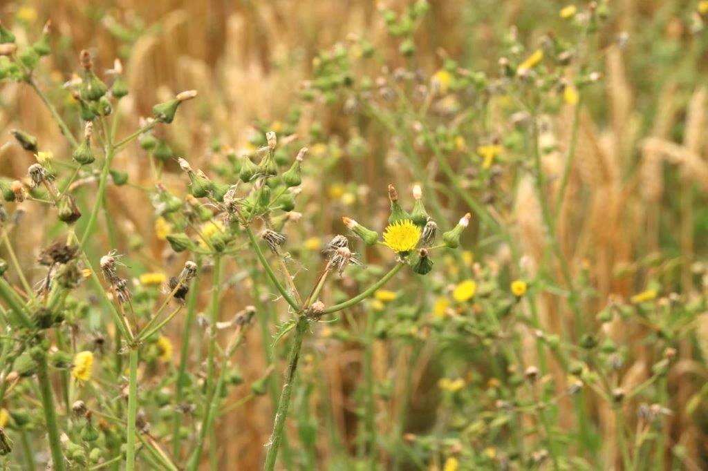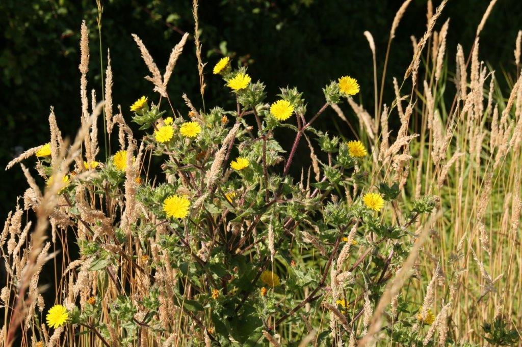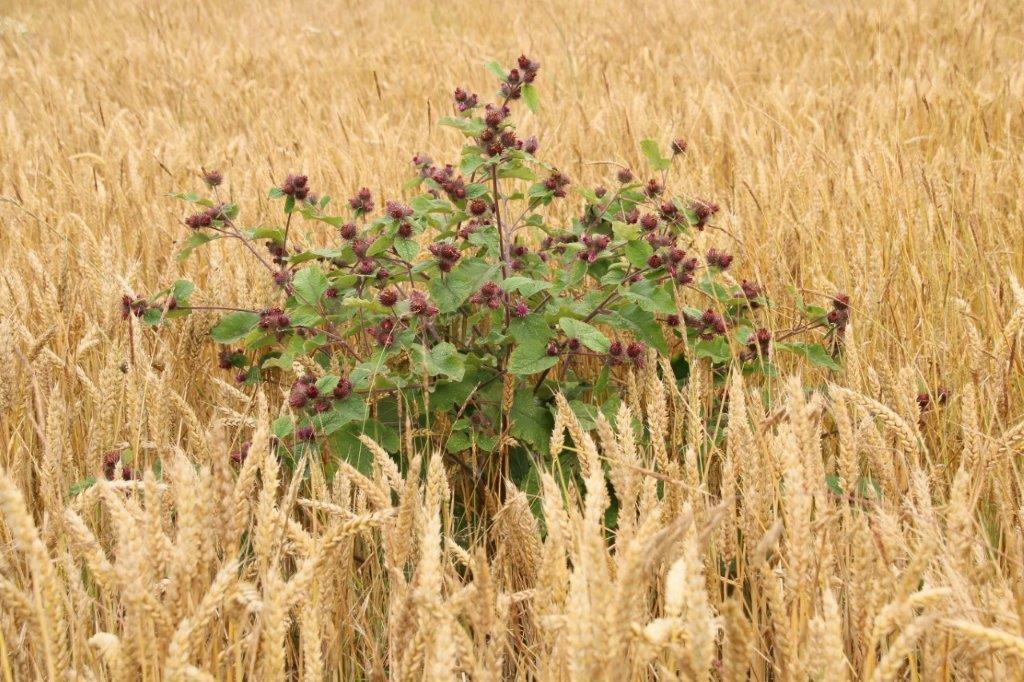 The wheat in the fields behind our home is still standing tall. The field will have been periodically sprayed with herbicides over the last few weeks, but wild flowers and grasses are still growing at the field edges, Lesser Burdock in the bottom field, and Prickly Sowthistle in the higher drier field near to the Lane.