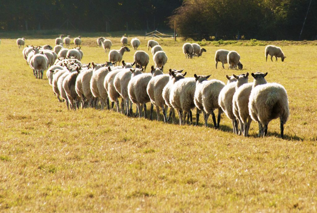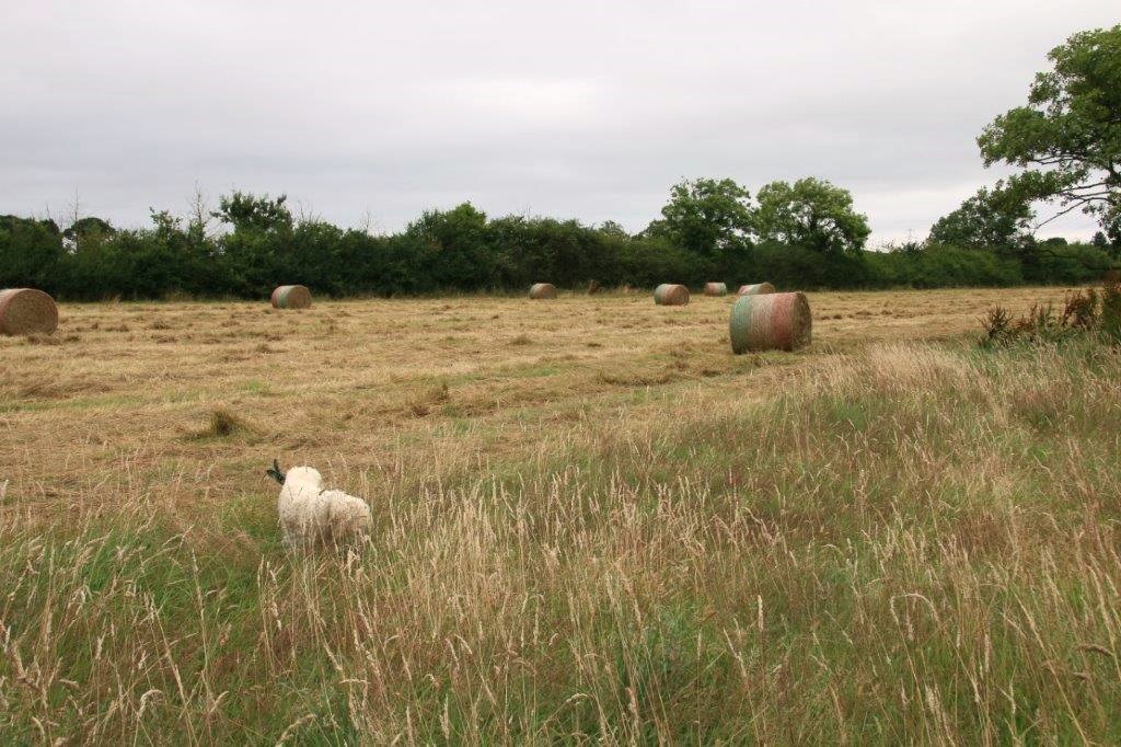 Dog walkers call the riverside pasture at the bottom of the shallow valley behind our home “The Sheep Field”, although in practice the field is only occupied by sheep for two or three months of the year. In Summer a hay crop is grown, and in winter the field floods and so cannot be used for livestock. After the hay crop was taken a month or so ago we knew that the presence of sheep was imminent when we saw fresh tyre tracks compacting the grass around the field edge – the farmer who rents the field for his sheep had been driving around checking the fences. Sure enough a day later we crossed the bridge over the river and saw sheep, fortunately before letting the dogs into the field. This is one of two enclosed fields around us where dogs can run and be safely fenced in, and now both have sheep in them. Fortunately, both of our dogs have a good recall, and can be off lead anywhere away from a road.