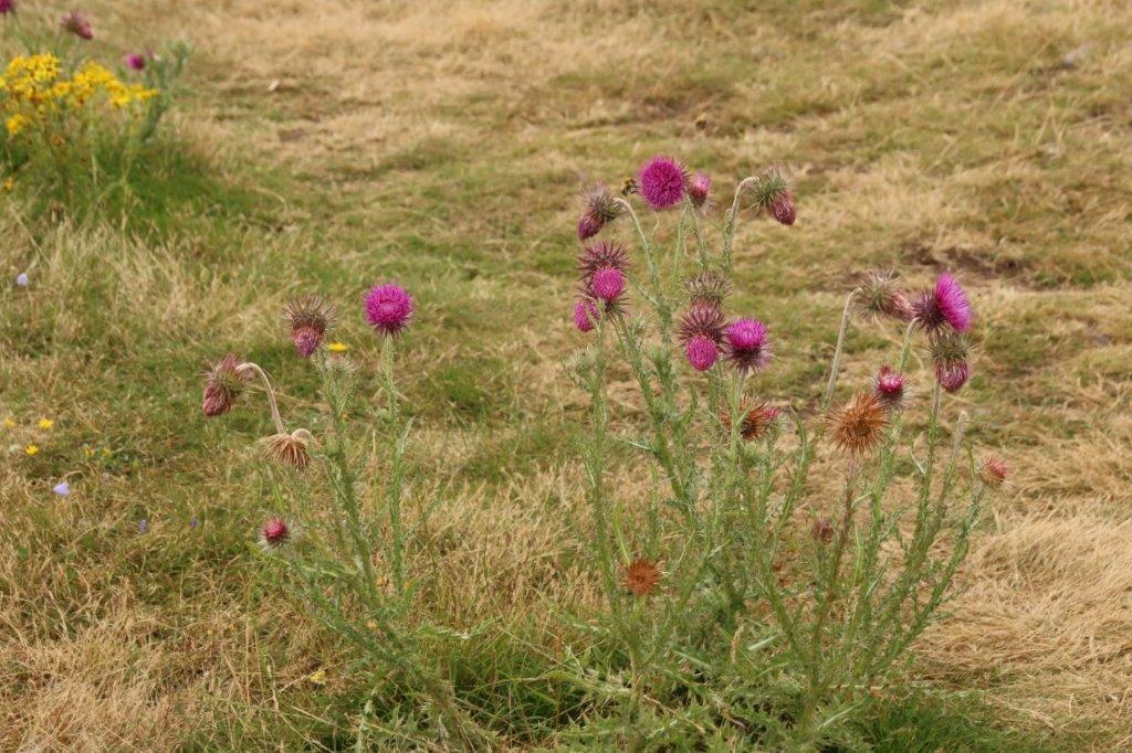 Climbing Croft Hill on our way home we walk between banks of ragwort, interspersed with musk thistle, and a carpet of bellflowers growing in the grass between breaking up the sea of yellow with deep purple and a delicate shade of blue.