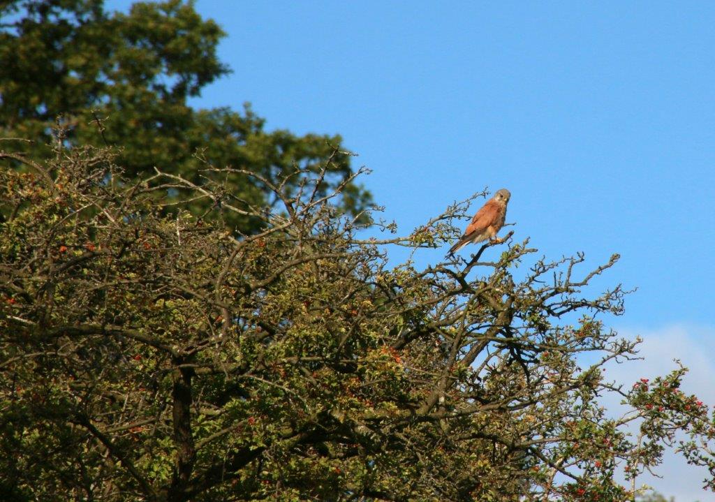 Whether it is slurry spraying or disking, there are times when it is best to avoid field footpaths. Our dogs are well trained, but I have no doubt that they would happily roll in the “perfume” that has been generously sprayed up to the edge of the path, and in any case dogs off lead would be an additional hazard for the tractor driver to be aware of. Instead we walked up onto Croft Hill, as a kestrel swooped over us to land on a nearby branch, eying up the grassland for small rodents