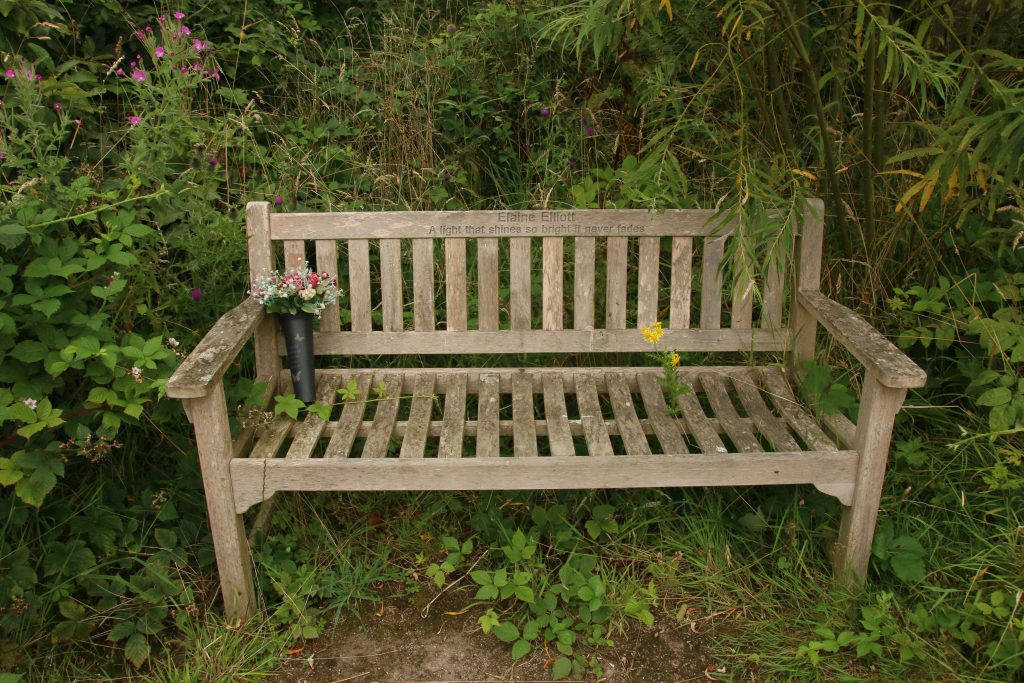 Away from the fields we can walk along the path that hugs the edge of the quarry, following the top of an artificial ridge, with trees growing down the sides, and long grasses higher up allowing views over the surrounding countryside. Recently a memorial has appeared at the highest point, an large granite boulder placed there by the quarry, with a plaque commemorating a local gentleman who clearly had links with both the quarry and village. Descending steps we returned along a lower path, branching off around the far side of a wildlife pond, where we passed another memorial – this time a seat placed in memory of a lady from the next village, who I believe had links with the local school and so was known by many. The seat overlooks the pond, a peaceful spot for remembering a loved one.