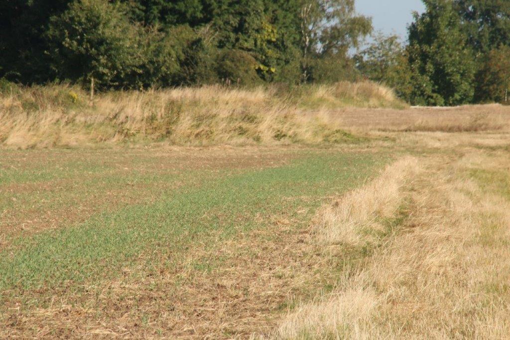 We crossed the sheep field, carefully putting dogs on leads as we did so (although I don’t think that either would chase sheep), and crossed the stile, with adjacent dog gate, beyond, and into the next field, an arable field. Although it has been only a few weeks since it was harvested, disked (shallow ploughed) and drilled (sown with seed) the field is already patchy green with emerging seedlings. Too early, with my experience, to identify next years crop, although I certain that it is a cereal rather than oil seed rape or beans.