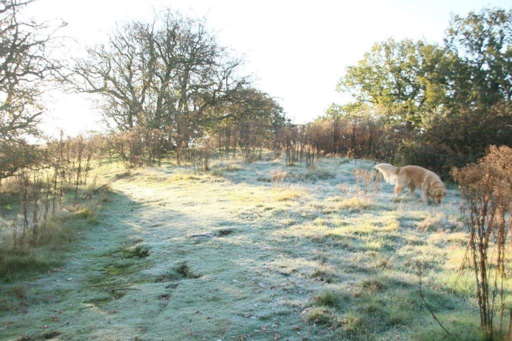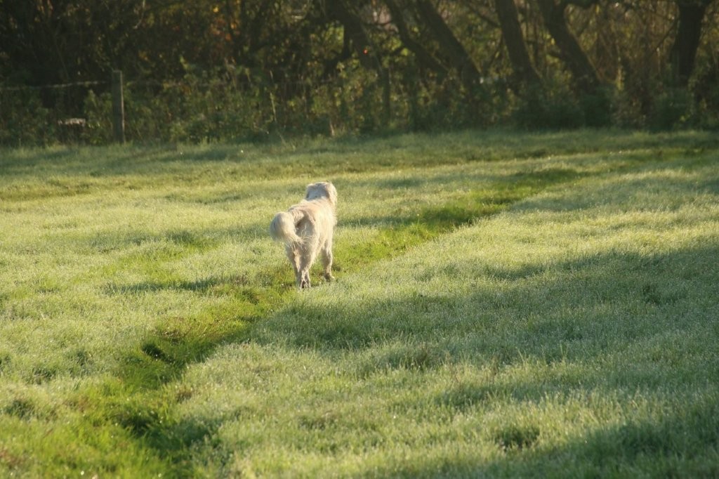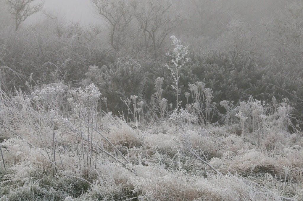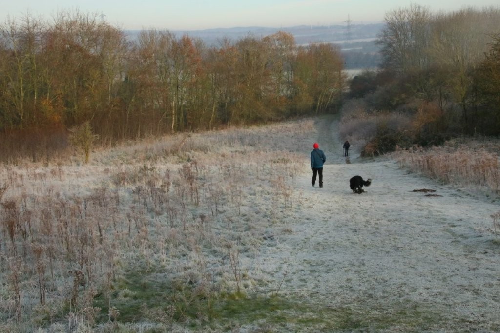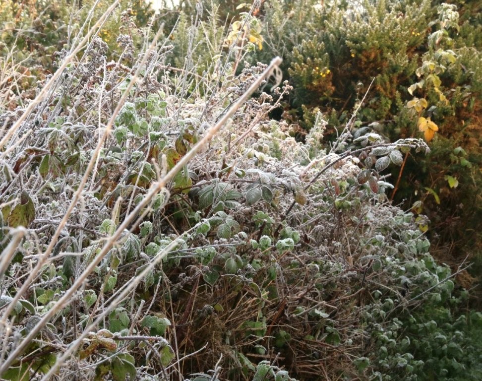 First ground frost this morning, although according to the weather sensor in my garden the air temperature was a degree or so above zero. For the first time I wished I’d worn gloves on my morning dog walk, especially on the top of The Hill, where there was a chilly breeze.