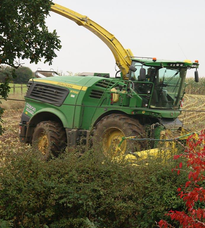 The final harvest has taken place – the maize plants in the field opposite our home were harvested a week or so ago, all bit less frantic than the busyness of the wheat harvest in August. The combine harvester for cereal fills with grain and stops to empty into a trailer, with trailers queuing at the field edge to ensure that combining ceases for as short a time a possible, and in the meantime a baler travels over the stubble baling the straw, while a separate vehicle collects and stacks the bales for collection. The maize on the far side of the Lane was completely shredded for sileage, preserved animal feed. The harvester cuts and shreds the maize, immediately feeding it to a tractor-drawn trailer alongside. No straw, no bales, to queuing trailers. And within a day the field has been ploughed.