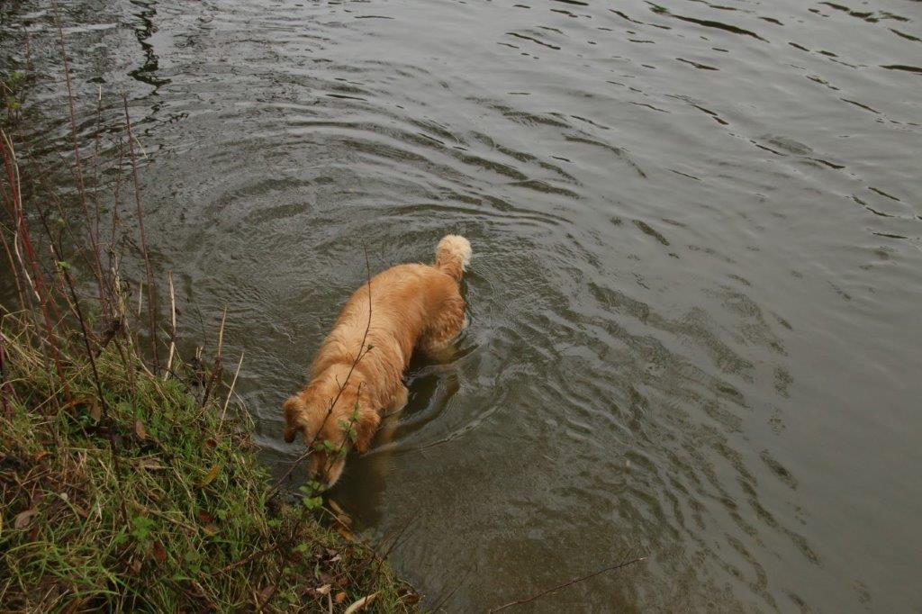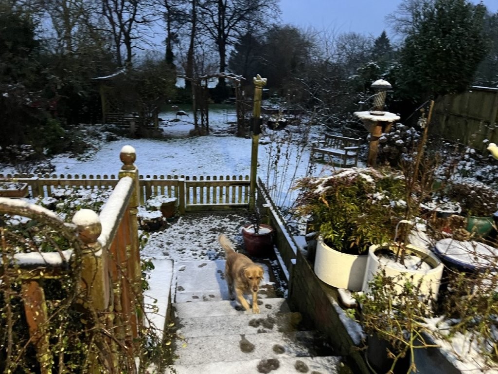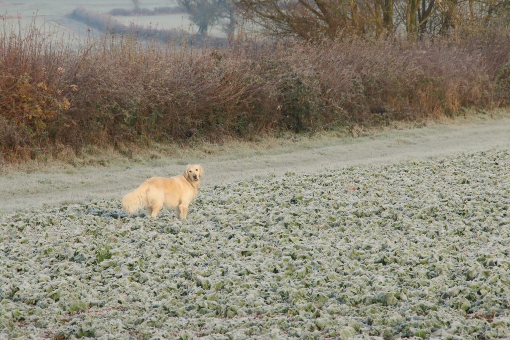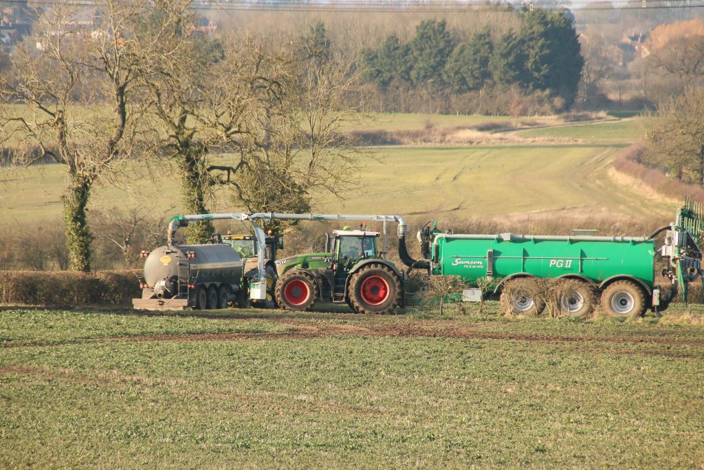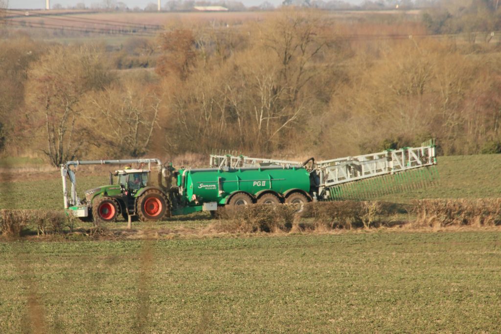 The rape field behind us has been liberally sprayed with slurry, either pigs or cows. The “slurry spreading season” starts at the beginning of February, to prevent winter rains from washing slurry into watercourses. Slurry should not be spread onto frozen ground, and this week has been the first when the sunshine has been strong enough to melt frost within an hour of sunrise. Thankfully a southerly wind has carried the odour away from our garden, or hanging out washing would not be an option. The slurry is spread from a tanker which refills from a second tanker that is constantly travelling to the farm supplying the slurry. One benefit of this is that the rutted field track has been smoothed. Grass will soon grow back through the worn tracks. While I am not looking Ellie falls behind and has an enthusiastic roll in a patch of slurry. She does not appreciate the bath that she gets when we get home.