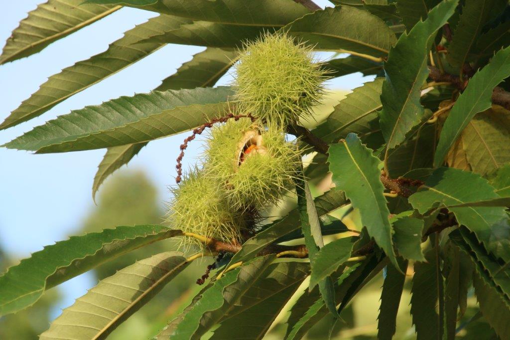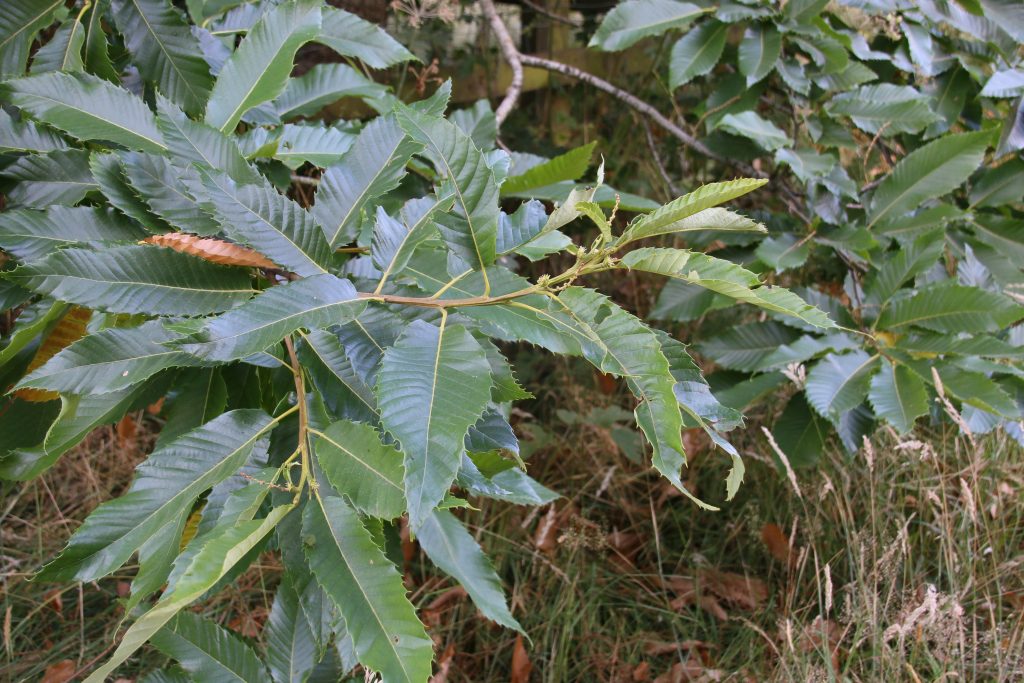 The weather remains mild, and on a sunny morning it almost feels like early summer. However the shorter daylength means that grass isn’t growing quickly, unable to support as much grazing. The sheep in the riverside meadow behind us have long gone, before even their relatively lightweight bodies cut up the soft ground. Now the sheep in “The Glebe”, a Woodland Trust managed field with scattered mature trees, have finally gone, to the relief of local dogwalkers. This enclosed field is a popular meeting spot for canine friends and their owners, walking circuits and catching up on local gossip. Sam and Ellie revelled in being able to run around the field, without being called back or kept close, as tends to happen on footpaths with blind bends or gaps in hedges. Many of the trees are oaks and horse chestnuts, but amongst them are a couple of sweet chestnut trees. Sweet chestnuts are the traditional roast-chestnuts favoured at Christmas. I have tried roasting them over an open fire, but was not impressed – a bit dry for my taste.