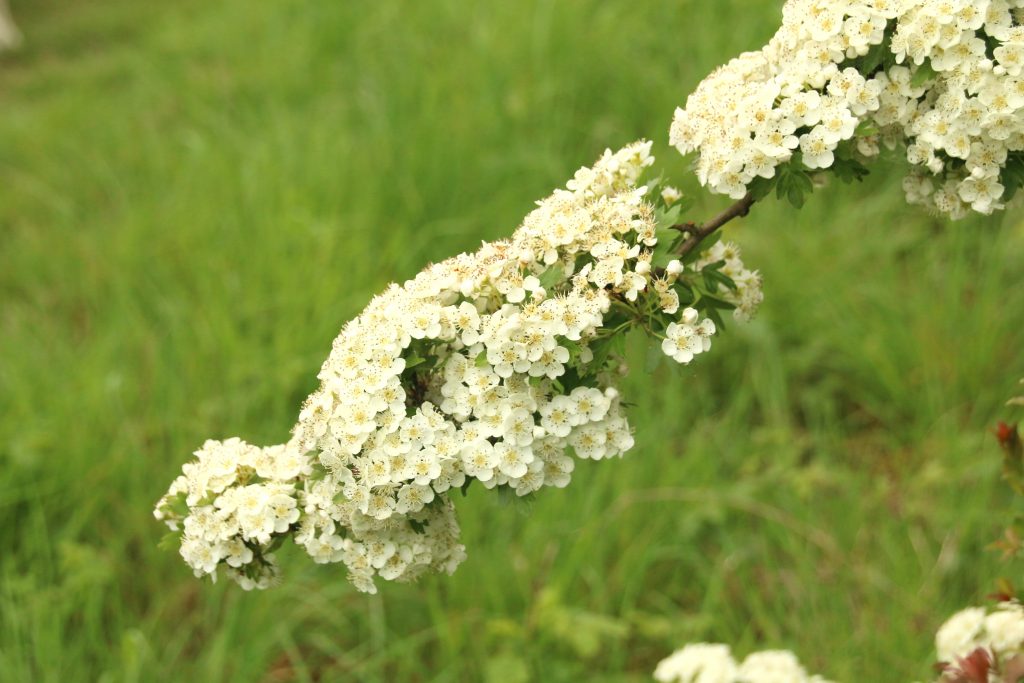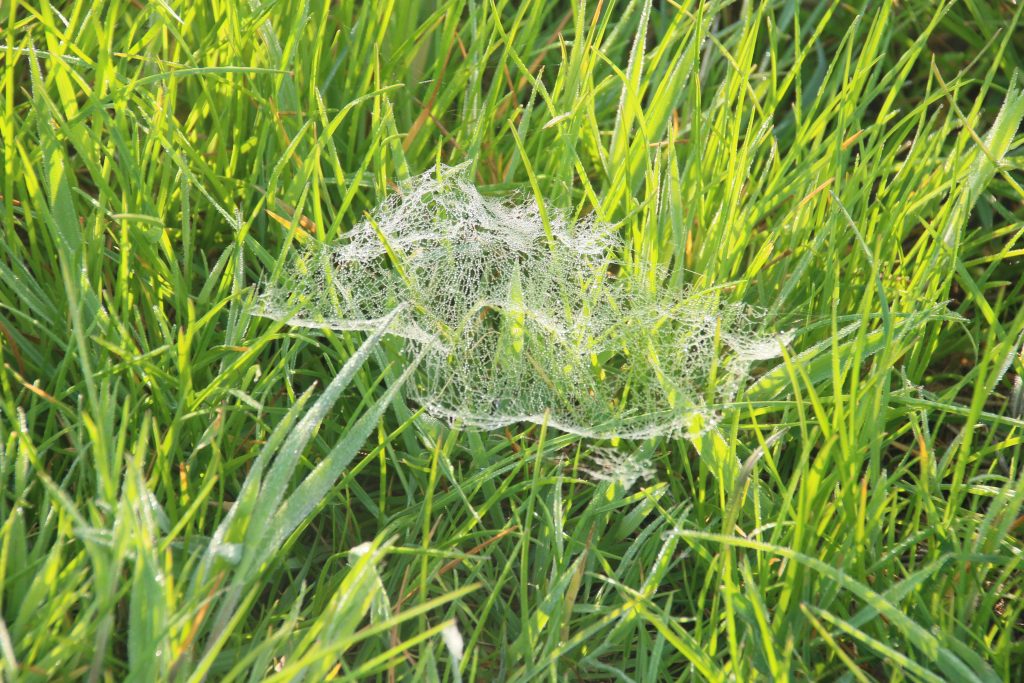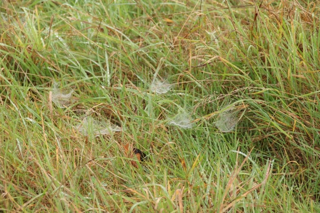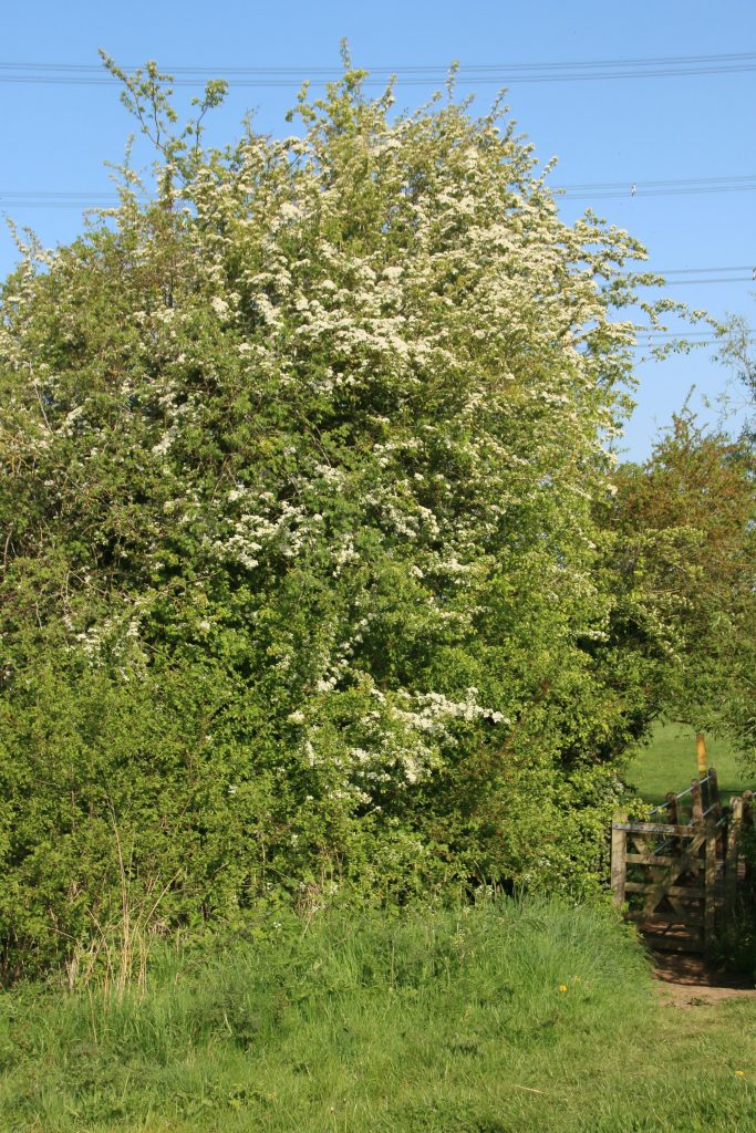 In the hedgerows hawthorn is coming into full blossom, at least on the shrubs that have not been trimmed. In hedges that were cut earlier in the year, encourage dense growth as necessary maintain a hedgerow, blossom is patchy – full blossom in places, but elsewhere the hedges are still green, with no budding flowers. Beneath the hedgerows the dew-ladened webs of the money spider glisten in the long grass.