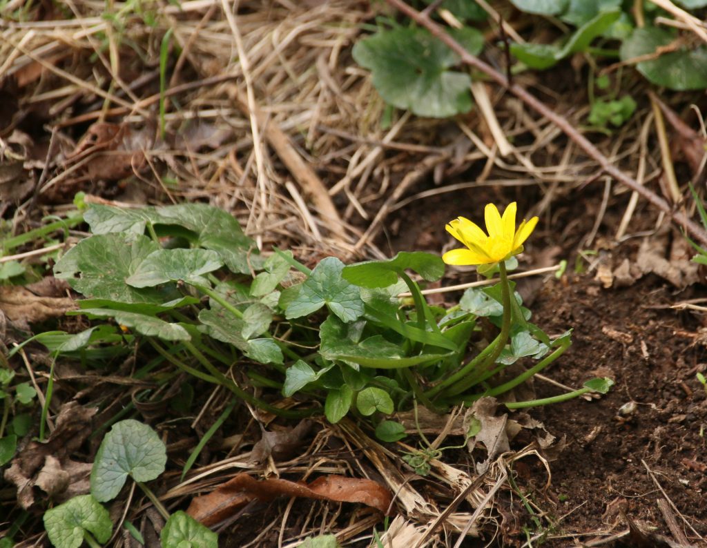 At last, the first “proper” sign of Spring in nature – today, for the first time, Celandines are in flower – these are Lesser Celandines, the unrelated Greater Celandines flowering a bit later in the year. The Celandine flowers are not isolated blossoms but scattered along the footpath down to the village, but all seem to have flowered overnight, or more accurately this morning, since Lesser Celandines only open during daylight. They are a common plant, almost invasive in places, and more flowers will carpet the grassy bank under the trees beside the footpath over the next few weeks. Rich in vitamin C, the plants have traditionally been used for a variety of ailments, including piles, but contain toxin, and so are best left undisturbed.