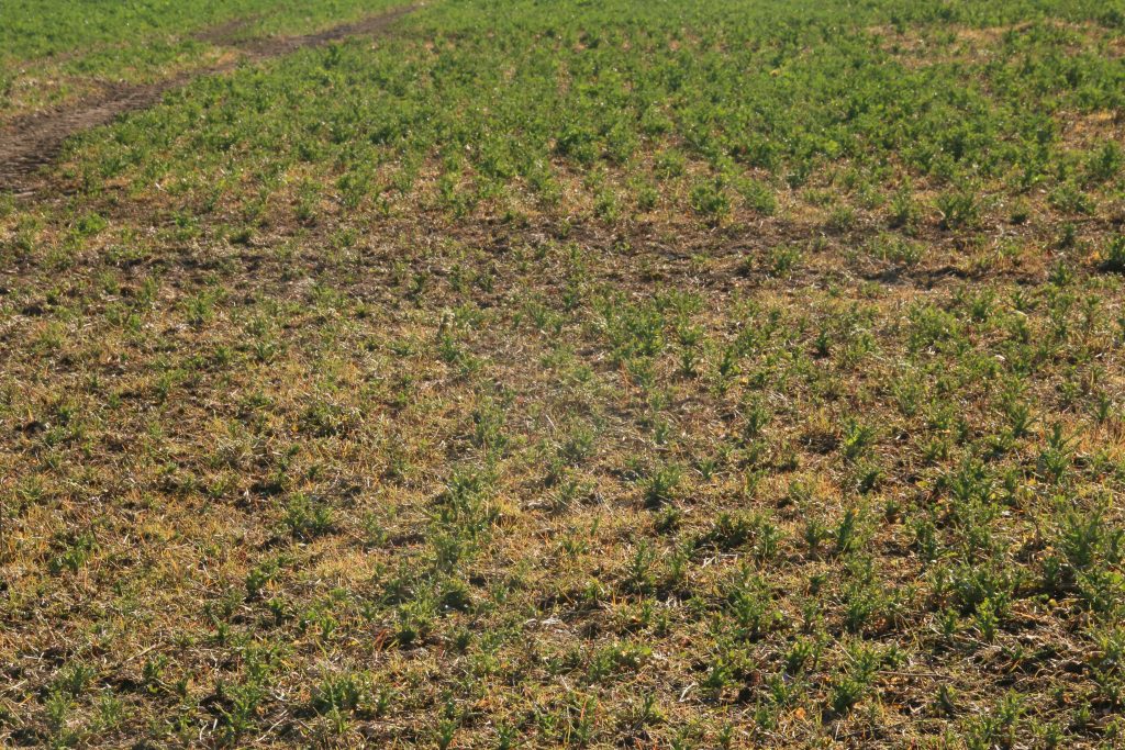 The rape in the fields behind us is growing rapidly, doubling in size over just a few days. The exceptions are the areas which have been ravaged by pigeons, corners where flocks seem to graze undisturbed by the bird scarer periodically exploding on the other side of the hedge some distance from these patches. Here the remaining rape leaves are almost shredded, and the plants stunted.