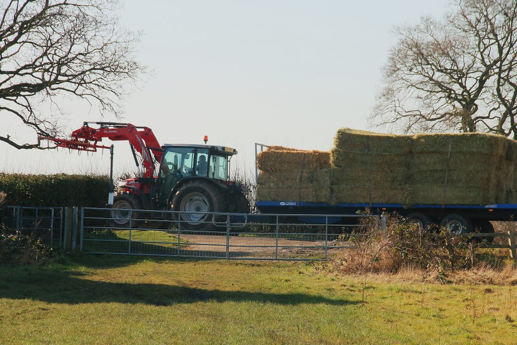 I notice a tractor towing a trailer of hay passing the gate onto our lane, which will be for animal feed. The ground is still too wet and grass growth not sufficiently vigorous for cattle to be turned out into fields, and the hay may be for cattle kept indoors over winter. However with this relatively small quantity of hay, and knowing our area, ot is maybe more likely that the hays has been purchased by local stables for horses.
