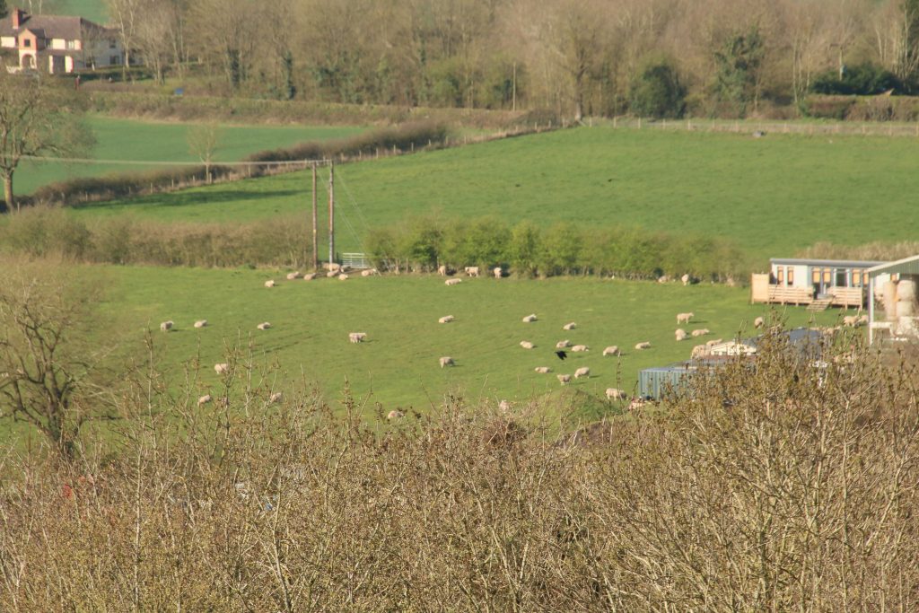 We have recently noticed a Red Kite patrolling the sky above the sheep field, identified by the forked tail, and I saw one, again today as we continued to walk between the round hay bales. At the far end of the field a Buzzard hovered. Buzzards are common around here, Red Kites less so, and not often seen. With similar prey and scavenging habits we may be on on the border of hunting territories for these two competing birds of prey.