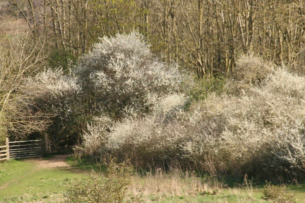 More rape flowers have opened in the field behind us, the greenery now clothed with more than just a hint of yellow. Before long the whole field will be a sea of bright yellow. In the hedgerows the last shrub to produce blossoms is now in full flower – Blackthorn. I have been waiting for this final dramatic display, partly because by the time that the Blackthorn flowers winter is unlikely to return this season, and partly because it is a promise of a bountiful Autumn harvest of sloes for Sloe Gin.
