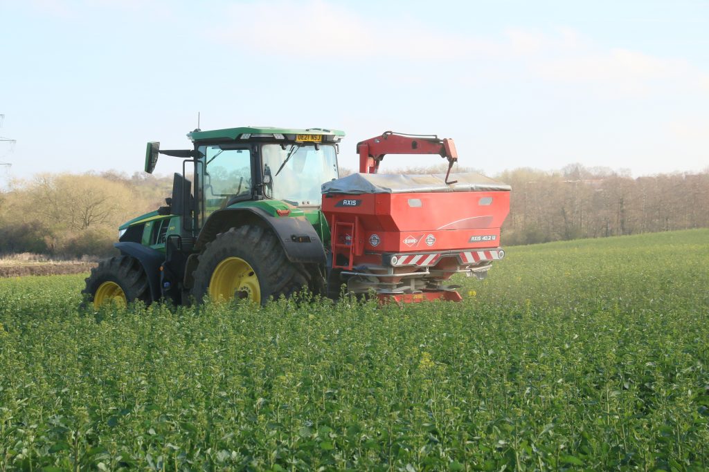 The rape crop behind us is just starting to flower, isolated yellow blooms among the green leaves. This morning the crop was fertilised, small white pellets “broadcast” across the crop. We keep dogs off the crop but must take care to wash paws in case any pellets, which could irritate skin, have ended up on the field path beside the path.