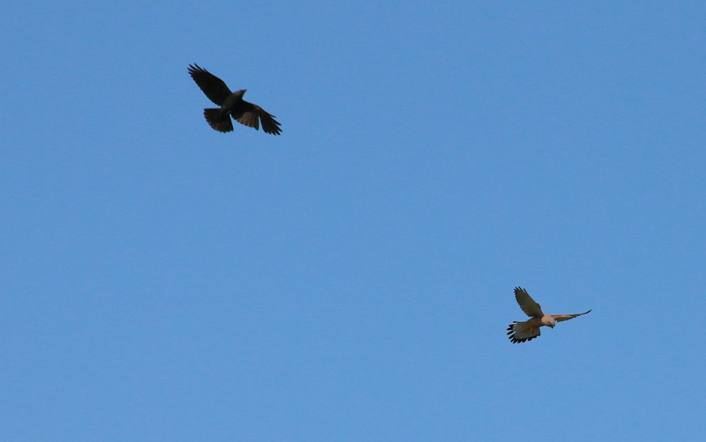A stroll up onto the “New Hill”, following the quarry edge. Despite the path being used regularly, spring vigour is causing the wild shrubs, mostly wild cherry, to encroach onto the footpath. The quarry company often sends maintenance contractors to keep paths clear, but if foliage begins to take over regular walkers on the routes bring secateurs for DIY pruning. Overhead a kestrel hovers, taking advantage of the updraught rising from the quarry. As we watch, a crow flies over the quarry and begins to mob the kestrel. At this time of the year the crows is probably defending a nest with chicks – there are many crow’s nests on the various ledges of the granite around the quarry walls. After a few minutes the kestrel opts for an easier hunt for small mammals, and heads for the fields below us.
