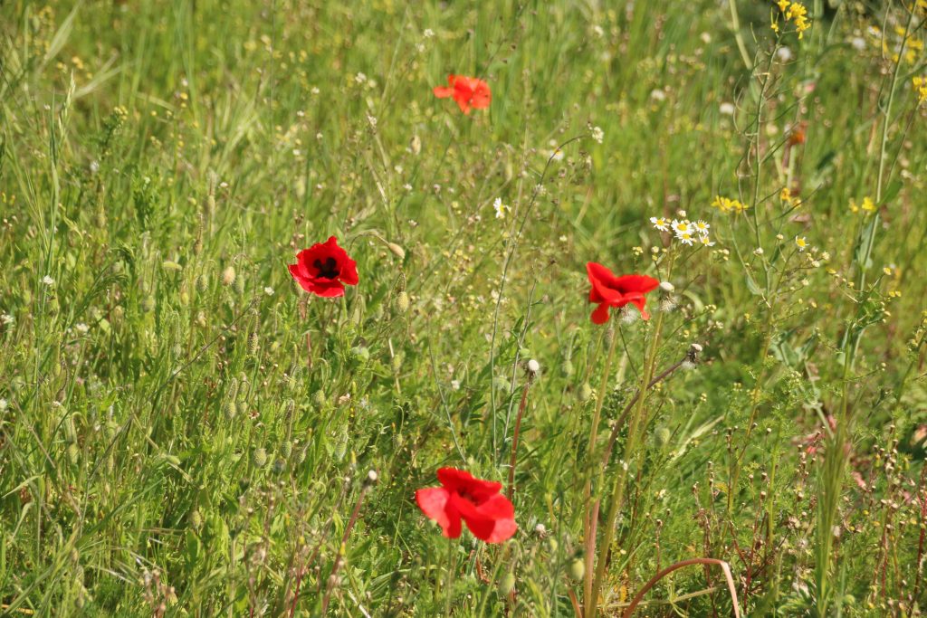 The fields around us have transformed from brown earth speckled with green to a vibrant green carpet thanks to a burst of growth by the cereal crop. Rape has begun to flower, with some fields already fully yellow and others with increasingly yellow patches.