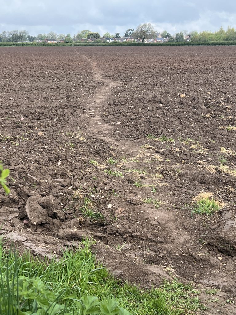 Walking the fields immediately behind our home are owned by a local building company, as a “landbank”, an investment, rather than for building. Footpaths across this land are well maintained, kept clear, with stiles and bridges kept in good repair by the County Council. Beyond this, about a mile from home, the path crosses a narrow plank bridge, passes through a gap in the hedge and enters the land of a neighbouring farmer. This farmer is less amenable to keeping footpaths maintained. He has recently ploughed the field crossed by the path and relied on the walkers to reinstate the path simply by following the route – not good if the field is wet mud.