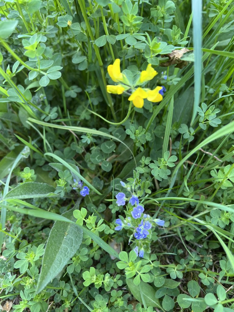 I’m not very good at recognising birds just from their song, other than the most common species. Fortunately I have discovered the “Merlin” app, excellent at identifying bird song, even on a breezy day which creats more background noise. Standing in the first field by the gate from the Lane the app quickly identifies a Robin, Dunnock and Greenfinch in the adjacent hedge, as well as the always-present skylark singing overhead. An easily observed and identified bird, wheeling and gliding above me, was not calling – a buzzard circling over the hedgerows and fields looking for its prey, small mammals and carrion. Its call is a familiar ethereal “mewing”, almost eery when first heard, especially if the buzzards are out of sight.