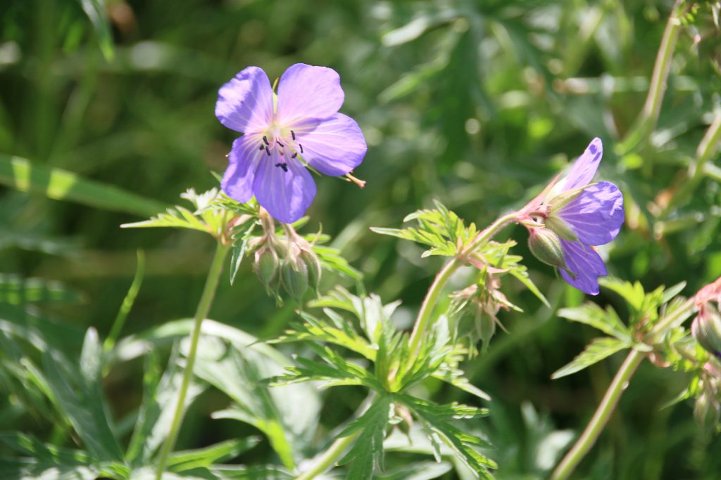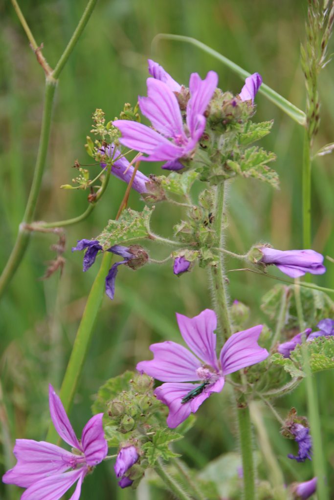 I was certainly glad to be out and about again once the consultant had given his approval. While I was transitioning from late spring into early summer and beginning to show the symptoms of weeks of dry weather. The dry spell has continued, but although they may not be lush and verdant, or as abundant as those that flower in spring, but summer flowering wild flowers continue to bloom. They cannot afford to miss valuable seed production and need to be flowering when insects are around for pollination. Meadows Cranesbill and Common Mallow flower beneath hedges, and clover decorates the grassed around the field edge.