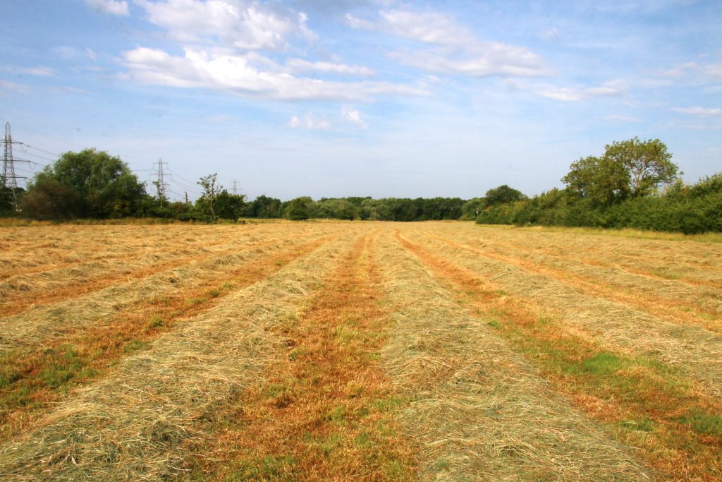 This morning I was delighted to discover that the “Sheep Field”, which has been an almost impassable tangle of meadow grasses for weeks, has now been mown, opening up other walking route. The grass lay in rows along the field and will be turned a few times to dry before being baled. Alternatively, it may be “packaged” in plastic to ferment as sileage. I’ve been told that this season there is a glut of hay, meaning that some farmers may need to store it until Winter before being able to sell it.