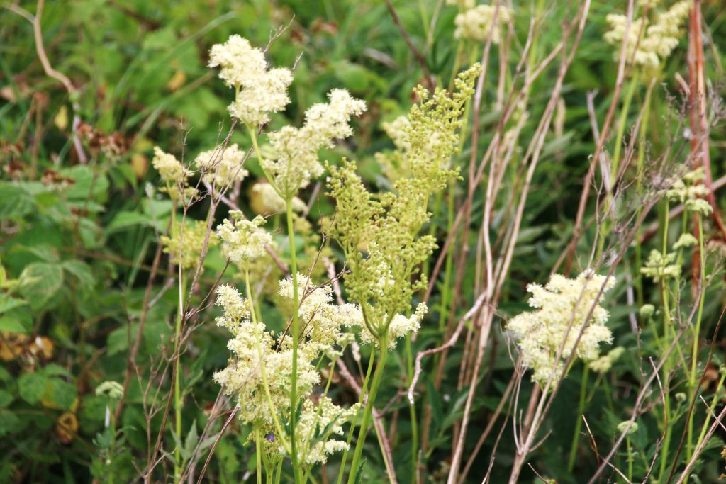 A favoured dog walking route is along the quarry edge, with views over the countryside, descending steps to the river for dogs to have a swim, and back along the valley. The valley path is almost impassable in winter, deep in mud, but dry by spring. This year it was June before the route could be walked without wellies, and even now there are muddy patches to be avoided. The grasses and wildflowers along the damp edges of the path are 2 metres or more tall, the flowers dominated by Meadowsweet, Tufted Vetch and Willowherb.