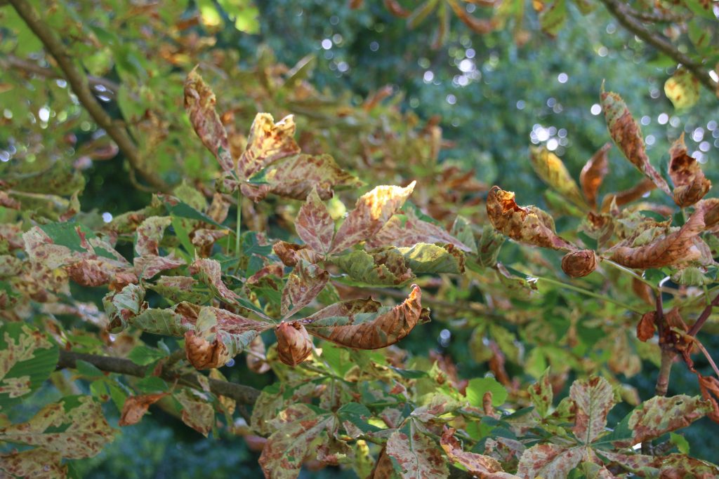 Mature trees have suffered in the drought. Trees on our lane have had an early leaf drop, and I have had to clear the drive of drifts of brown foliage, a task not usually needed until October or later. On Croft Glebe 20m high Horse Chestnut trees appear to by dying, with dry brown leaves, although the trees will recover next season. In contrast Sweet Chestnut and Walnut trees are thriving, only a short distance from the dying Conker trees. Lime Trees are also healthy on the Glebe, surprising since the seeds of lime trees on our Lane, a mile away and only a bit higher up, are dropping early in great quantity, contributing to the piles of leaves on the verges from other trees.
