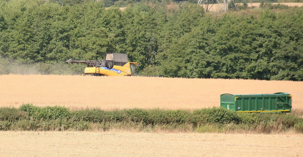 The two fields behind our home has been harvested, or combined, today, 5 hectares, approximately a third of a mile in each direction, turned from standing wheat to stubble in a working day. Apart from occasional days of cultivation, crop care, generally just involving just one tractor, the field is peaceful for 364 days a year, and then for one day it is a hive of activity, almost industrial in scale.