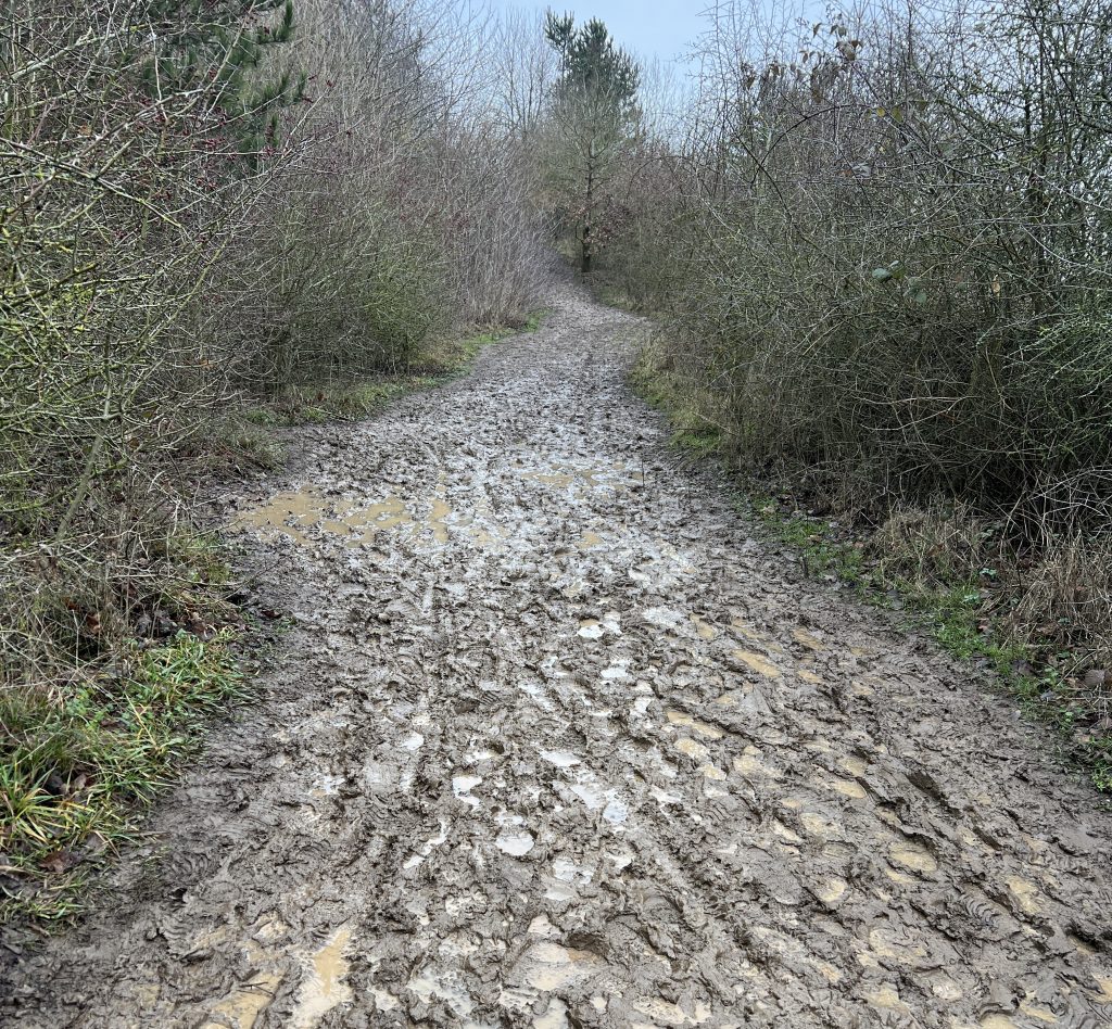 When folk in town fancy the idea of moving to a nice place in the countryside, with all those bracing country walks, they probably haven’t visited the countryside in January. In January much of the countryside can be described in one word. Mud. Pastureland squelches underfoot. Arable land becomes claggy, wet soil transferring onto boots if one strays from the path onto young crops maybe to avoid pools of brown water across footpaths. And as for the footpaths themselves, at best they are slick with mud, but anywhere well-trodden, such as gateways or stiles, the ground is a quagmire.